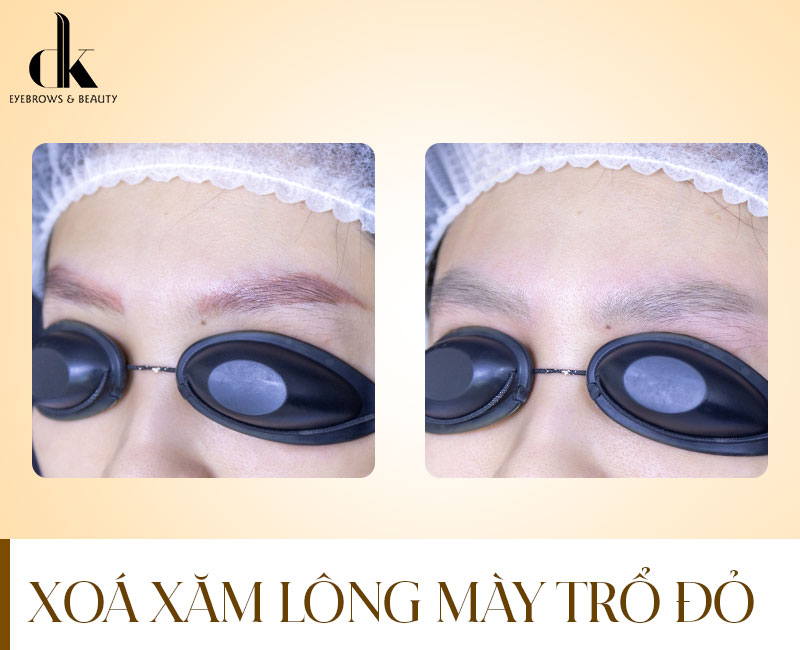 Lông mày trổ đỏ là tình trạng thường gặp nhất, đặc biệt với các loại mực xăm cũ hoặc mực có chứa oxide sắt. Theo thời gian, các sắc tố đậm như đen hoặc nâu sẽ phai trước, để lại phần sắc đỏ tồn dư trong da. Màu đỏ này sẽ càng rõ hơn nếu mực được đưa vào tầng da sâu hoặc tồn tại dưới dạng cặn mực.