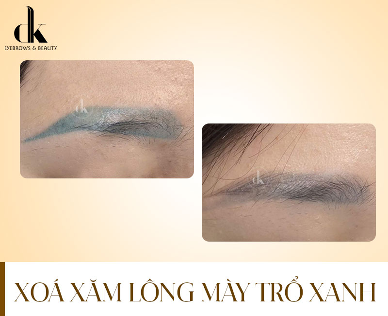 So với trổ đỏ, lông mày trổ xanh hoặc xanh lá được đánh giá là khó xoá hơn nhiều. Nguyên nhân đến từ thành phần mực có chứa sắc tố xanh, vàng và carbon. Khi mực đen phân huỷ không hoàn toàn, các sắc tố này kết hợp lại và biểu hiện ra ngoài thành màu xanh lá hoặc xanh xám.